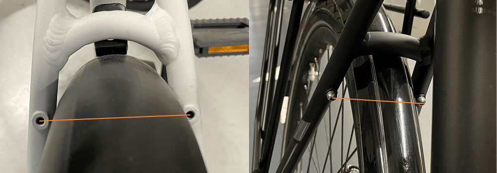 De breedte van de montagegaten op de achterbrug is te zien op onderstaande afbeelding. Als je het Pro Amparo 4750 SL R Ringslot wilt plaatsen moet de afstand tussen de montagepunten 86 tot 100 mm zijn. Daarmee past het slot goed op de meeste fietsbanden.