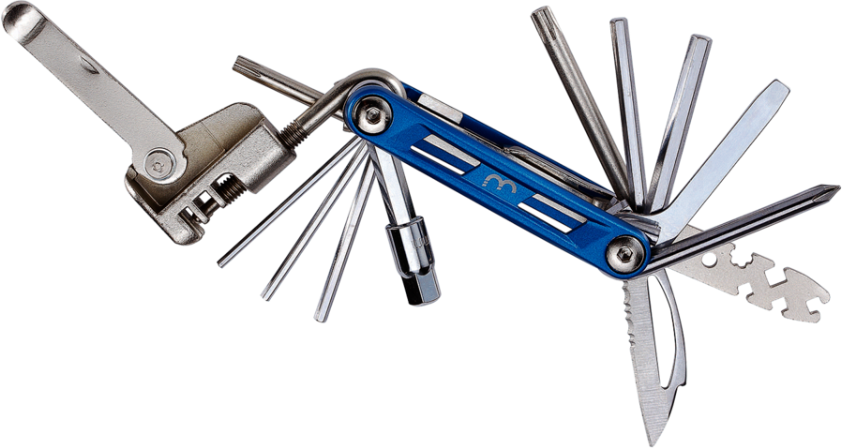Met de BTL-48XL PrimeFold XL minitool van BBB Cycling ben je op elke probleem voorbereid, want hij bestaat uit 18 verschillende functies waaronder de inbusmaten 2,2.5,3,4,5,6 en 10 mm, torxmaten T25 en T30, kruiskopschrovendraaier (PH-3) en platkopschroevendraaier (SL-6), kettingpons, spaaksleutel maten 3.23, 3.30, 3.45 en 3.96 mm, half gekarteld mes en een remblokspreider. Door zijn kleine formaat en lichte gewicht is hij ideaal om onderweg mee te nemen. Ondanks zijn kleine formaat en lichte gewicht is het wel duurzaam gemaakt van sterk materiaal waardor je veel kracht kunt zetten. Zie onderstaande video voor verdere uitleg.