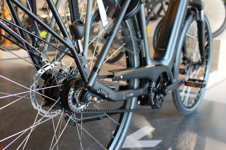 Ook deze fiets heeft de accu op de achterdrager. Het speciale aan dit model is de mooie riemaandrijving met de 8 versnellingsnaaf. Een riemaandrijving is onderhoudsarm, want deze hoef je niet te smeren, daarbij gaat een riem tot wel drie keer langer mee dan een normale ketting.