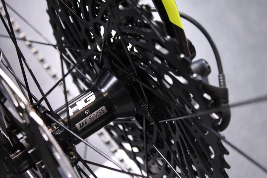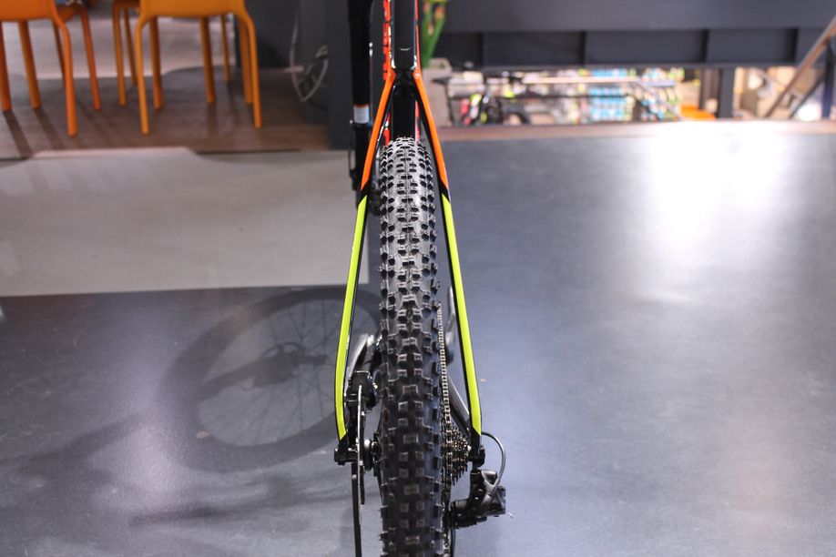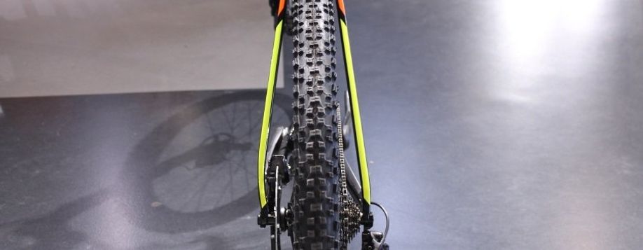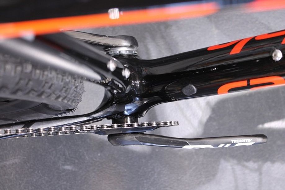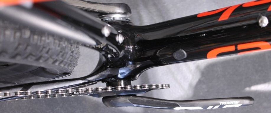 Ook bij de achterdriehoek van het frame gebeurt iets unieks. Hier passen ze hun Ai-techniek (asymmetrische integratie) toe. Het achtereinde is aan de rechte kant van de fiets breder, in combinatie met een asymmetrisch achterwiel en bijpassende cranks. Dit biedt drastische voordelen. Het achterwiel is stijver en daardoor steviger, de korte liggende achtervorken zorgen voor meer tractie en wendbaarheid.