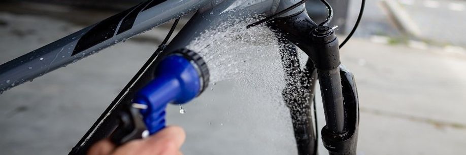 Voordat je begint met het schoonmaken van je fiets is het van belang om je fiets eerst goed af te spuiten met water. Hierdoor verwijder je namelijk het grove vuil en is het daarna makkelijker om je fiets te kunnen ontvetten. Spuit je fiets bij voorkeur niet af met een hogedrukspuit of tuinslang met de kraan volledig open, hiermee spoel je namelijk het vet uit de lagers van je wielen, trapas en balhoofd. Onze tip is om een tuinslang met zachte straal te gebruiken, een harde straal kan schade veroorzaken. Richt ook nooit de waterstraal direct op de lagers.