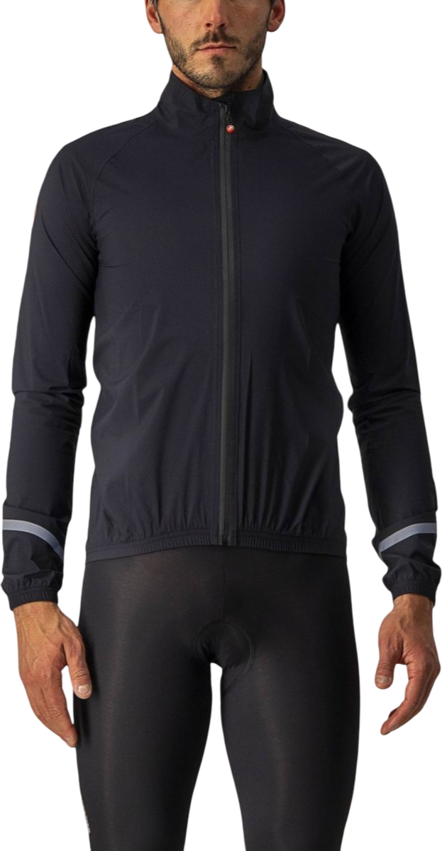 De Castelli Emergency 2 Regenjas is een compacte regenjas die je gemakkelijk overal mee naar toe kunt nemen voor het geval dat. Zoals de naam al zegt: deze jas is echt bedoeld als noodoplossing. De jas is volledig waterdicht en is dus een echte uitkomst als het ineens begint te regenen. De jas heeft een extra lang achterpand, zodat je ook in de fietshouding volledig droog blijft. De jas is nauwsluitend, maar past over een fietsshirt. Ben je van plan om dikkere kleding onder de regenjas te drager? Neem dan een maatje groter.