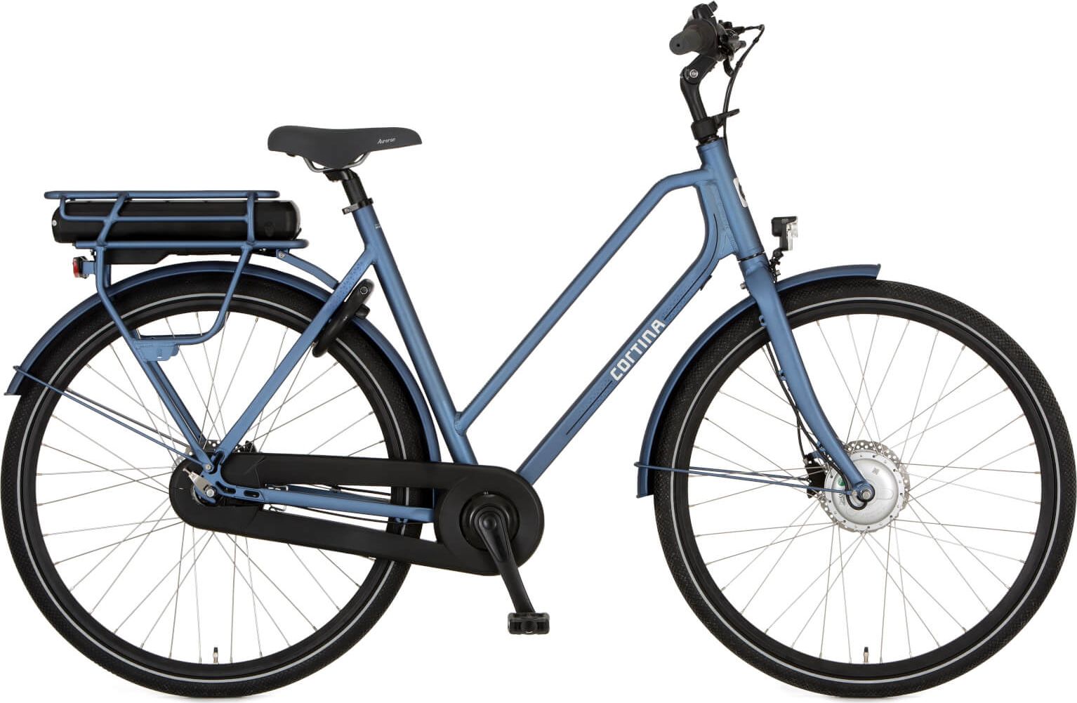De Cortina E-Foss is een zeer degelijke e-bike voor een vriendelijke prijs. Dankzij de vriendelijke prijs is dit een uitstekende keus voor iemand die zijn eerste e-bike koopt of een niet al te dure e-bike wil. Het aluminium frame is zeer degelijk en heeft een comfortabele geometrie. De stuurpen is eenvoudig te verstellen, waardoor je de zithouding helemaal naar je eigen smaak kunt instellen.