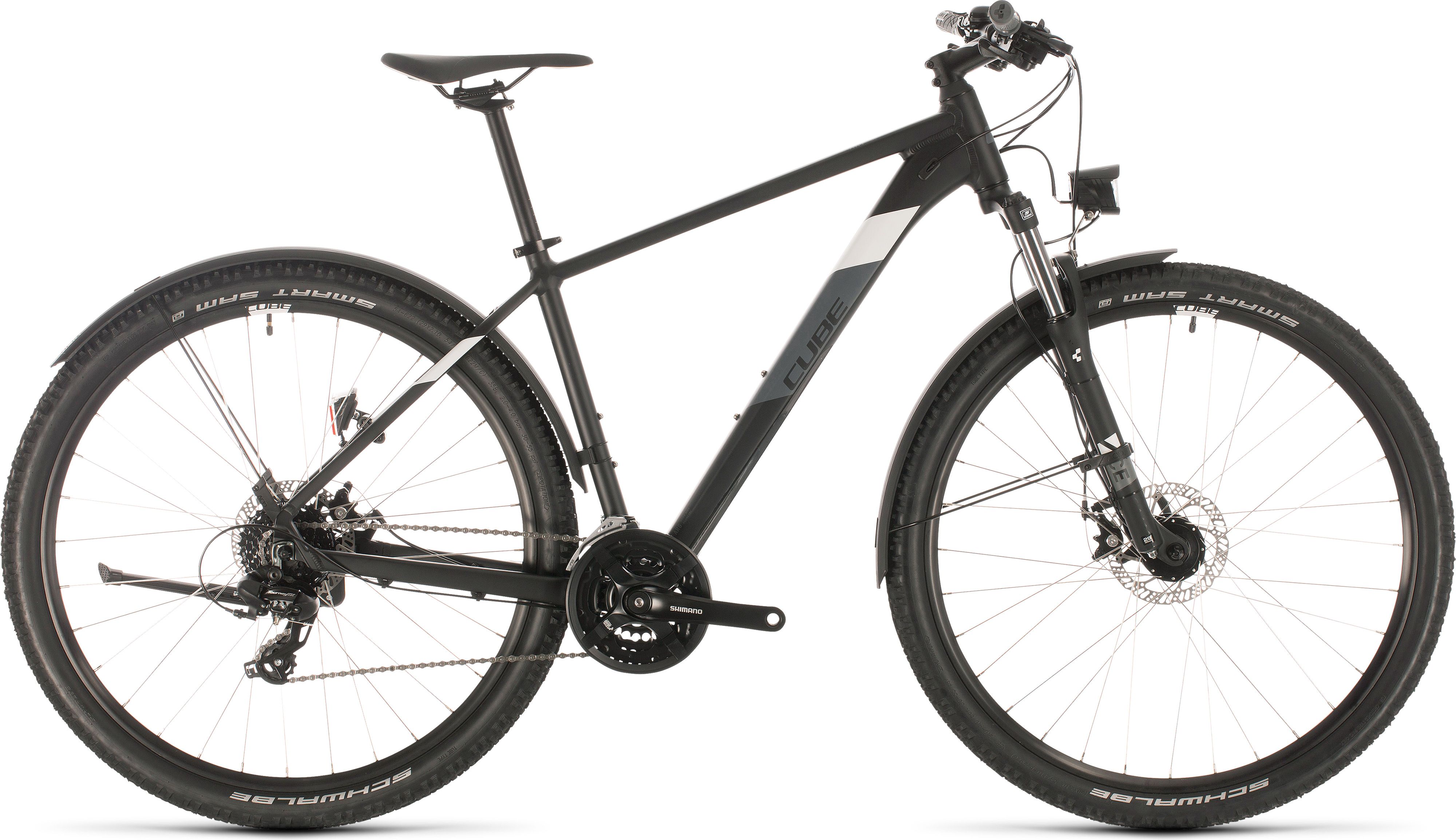 De Cube Aim Allroad is een compleet uitgeruste en comfortabele mountainbike. Dit model is namelijk standaard uitgerust met spatborden, verlichting, een standaard en een bel. Hierdoor is deze fiets niet alleen geschikt om onverharde paden te ontdekken, maar kan deze bijvoorbeeld ook prima worden gebruikt als sportieve schoolfiets. De Cube Aim Allroad is verkrijgbaar in kleinere framematen (14", 16" en 18") en voorzien van 27,5" wielen. De zadelhoogte van deze fiets laat zich daarbij gemakkelijk verstellen dankzij de Quick-Release zadelpenklem. Daarnaast is dit model voorzien van 24 versnellingen, een SR Suntour geveerde voorvork en mechanische schijfremmen.