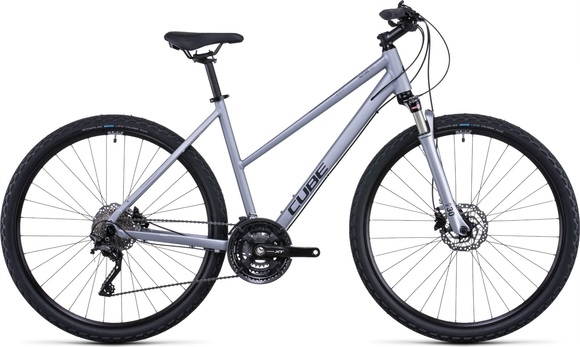 De Cube Nature EXC 2022 is een prachtige fiets die heel breed inzetbaar is. Deze fiets kan gebruikt worden voor woon-werkverkeer, maar ook een sporadisch ritje door de bossen is geen enkel probleem voor deze fiets. De fiets wordt geleverd met een geveerde voorvork voor extra veel comfort en hydraulische schijfremmen, die je op alle momenten van genoeg remkracht zullen voorzien. De fiets is afgemonteerd met een Shimano XT achterderailleur, een upgrade ten opzichte van het 2019 model, die een Shimano SLX achterderailleur had. Met deze derailleur weet je zeker dat je betrouwbare en goede schakelprestaties hebt en dat de onderdelen lang mee zullen gaan.