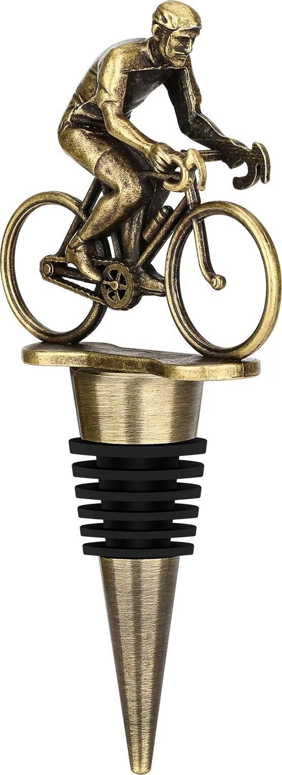 - Stijlvolle koperkleurige wijnfles stopper met een wielrenner erop