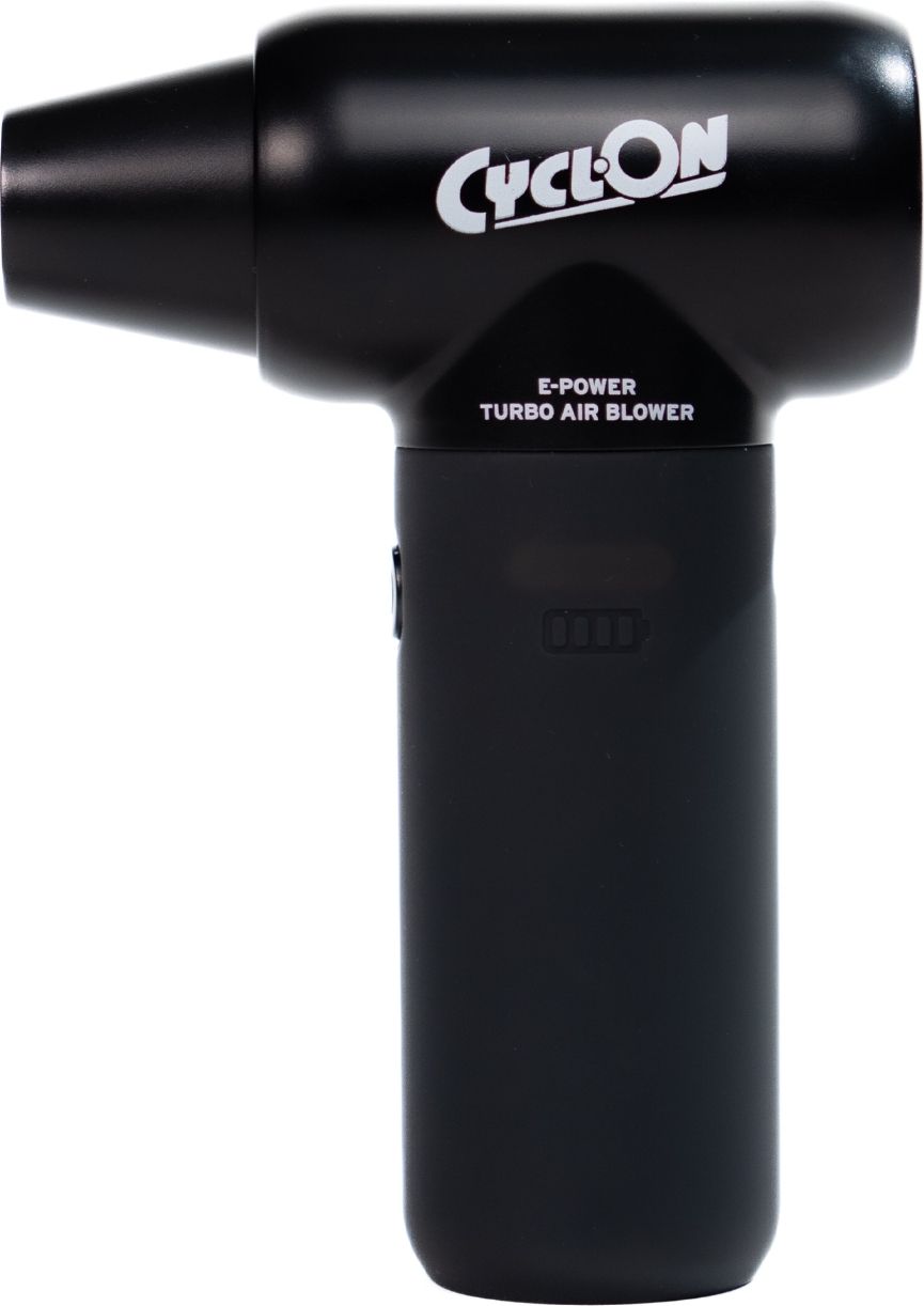 De CyclOn E-Power Turbo Air Blower is een handig hulpmiddel om je fiets snel en effectief te drogen na een wasbeurt of een natte rit. Met de gerichte luchtstroom blaas je eenvoudig water en vuil weg uit moeilijk bereikbare plekken, zoals tussen de cassette, derailleur en rond lagers.