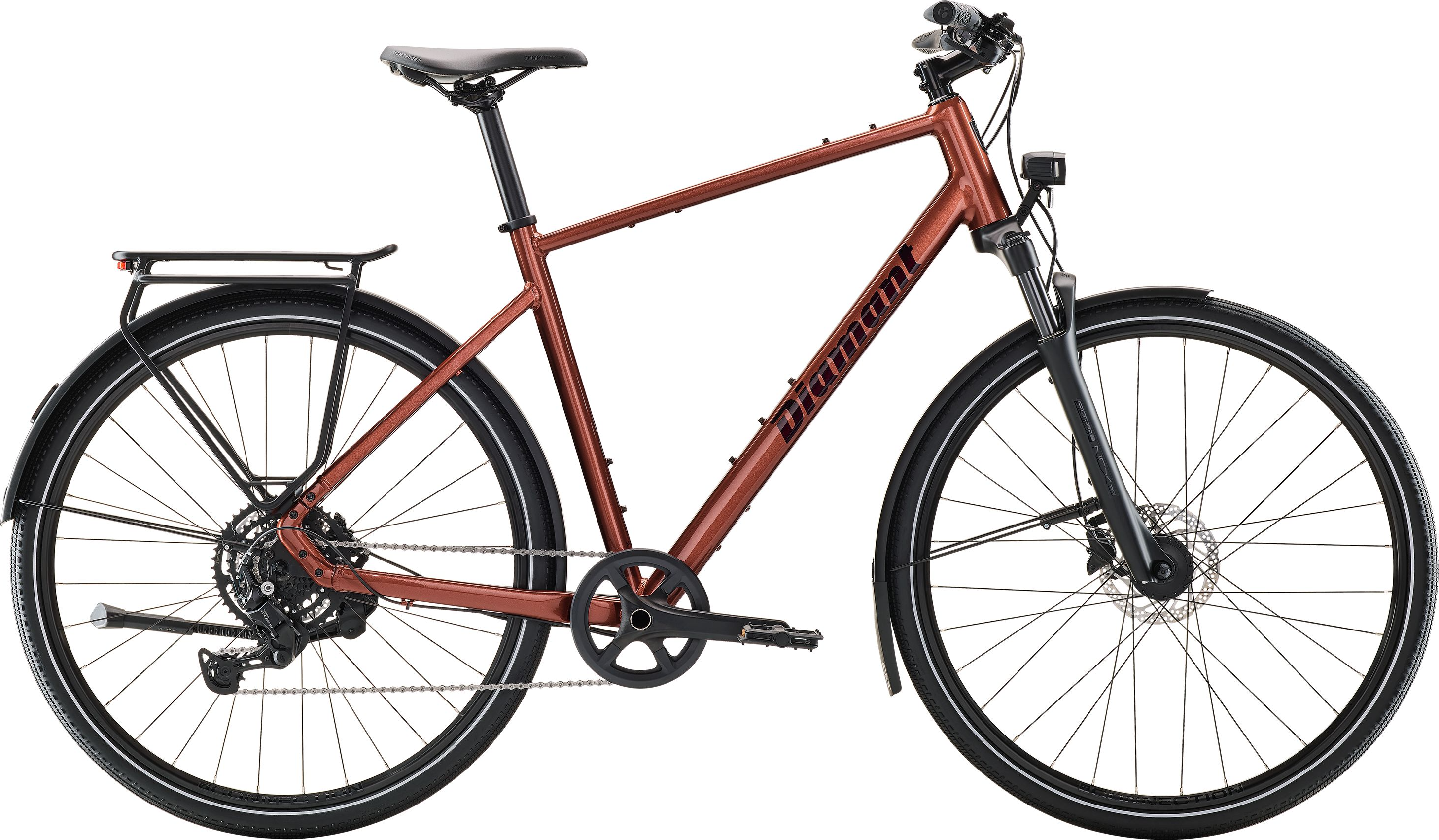 De fiets wordt (bijna) volledig uitgerust uitgeleverd. Hij is uitgerust met spatborden, verlichting, een standaard en een bagagedrager. De verlichting gaat aan door middel van een dynamo en het achterlicht heeft een standlichtfunctie. Dit wil zeggen dat als je stopt, het licht blijft branden. Dit is ideaal om goed zichtbaar te blijven op donkere kruisingen. Een ringslot wordt niet standaard gemonteerd vanuit Diamant, maar de bevestigingspunten zijn er wel. Wij adviseren je dan ook graag over welk ringslot je het best kan kiezen als je de fiets op slot wilt zetten.