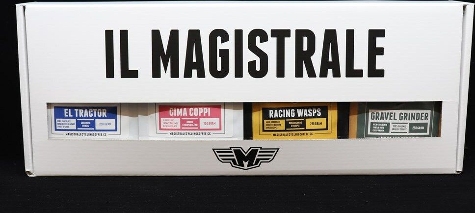 Dit pakket bevat vier soorten koffiebonen (4x250 gram). De Cima Coppi en Racing Wasps koffiebonen zijn tevens los in ons assortiment verkrijgbaar. Daarnaast komen in deze verpakking nog de El Tractor en Gravel Grinder koffiebonen.