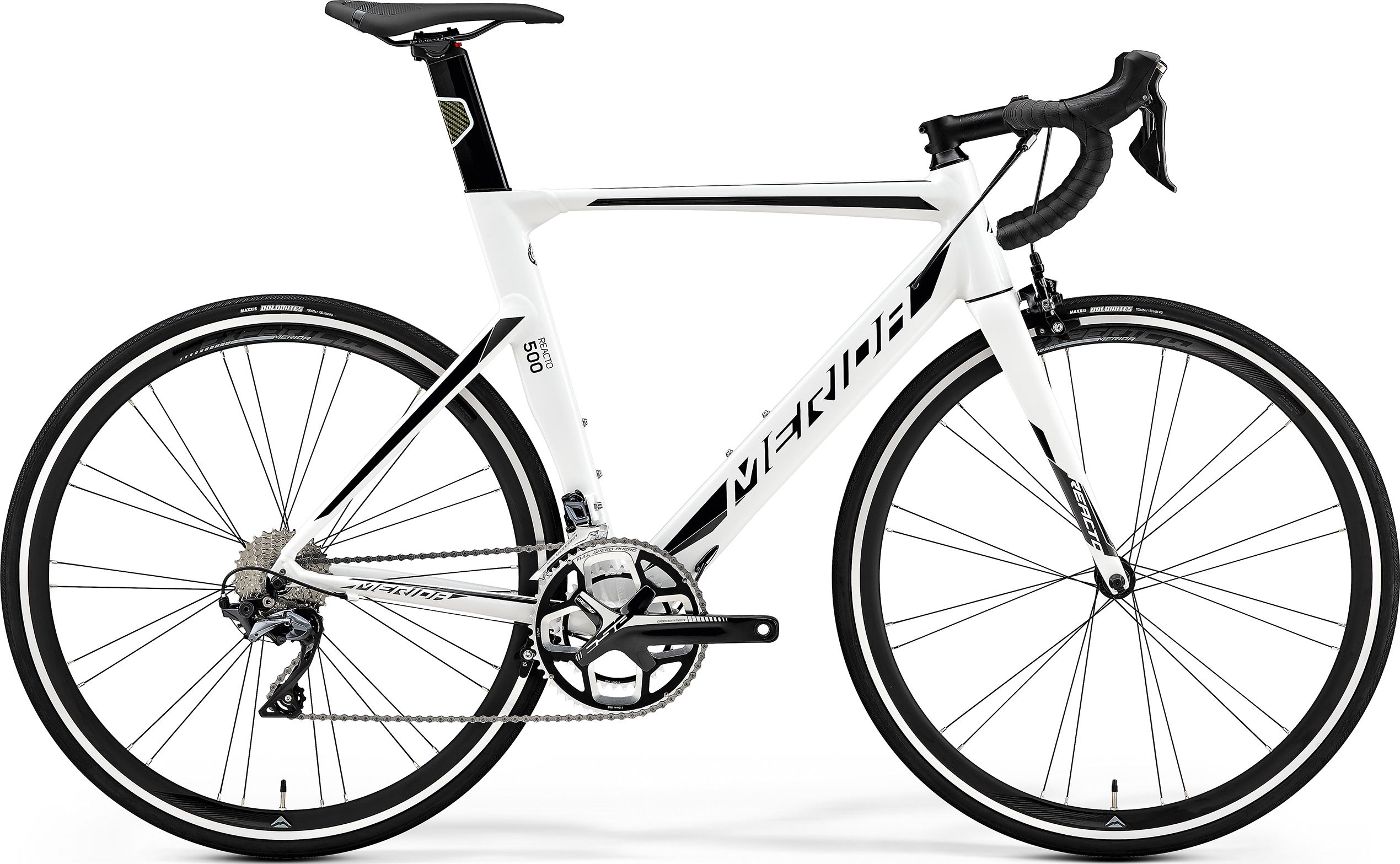 De Merida Reacto 500 is een aerofiets met een Shimano Ultegra afmontage. Het frame is van aluminium en de voorvork is van carbon, waarmee gewicht bespaard wordt en extra stijfheid toegevoegd wordt. De Ultegra afmontage biedt je zeer goede schakelprestaties. De Shimano 105 velgremmen zijn prima maar kwalitatief toch wel niet iets minder dan Ultegra remmen. Verder is de fiets aangekleed met Merida Expert onderdelen.