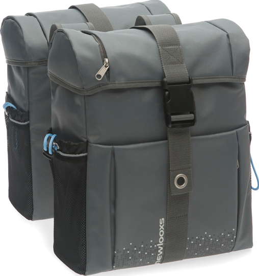 De New Looxs Vigo dubbele fietstas is een hippe, robuuste tassenset, met een totale inhoud van 36 liter. De set wordt bevestigd met lussen en bevestigingshaken. De sluiting van het hoofdvak werkt met een kliksysteem, bovendien heeft de tas voorvakken die voorzien zijn van een ritssluiting. De tas is gemaakt van waterdicht polyester, met reflecterende onderdelen.