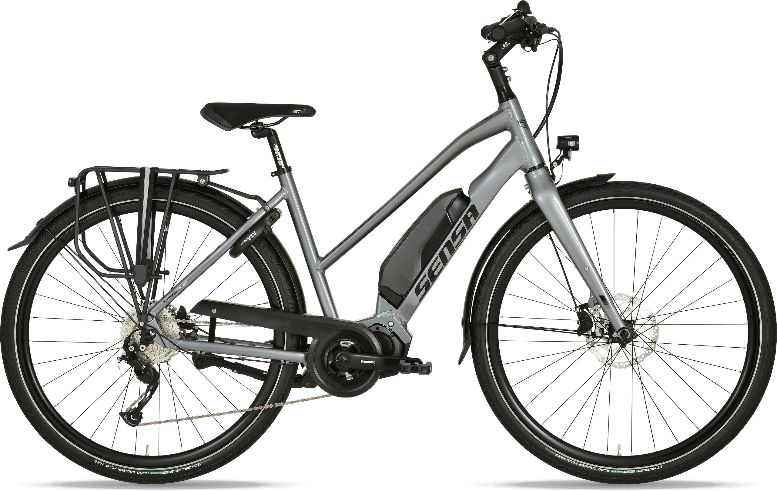 Schakelen doe je met de Shimano Alivio-speed derailleur en het remmen gaat krachtig en doseerbaar met de Shimano hydraulische schijfremmen. Daarnaast heeft de fiets brede Schwalbe Road Cruiser banden, een AXA Defender ringslot, verstelbare stuurpen en een zadel met refectoren aan de achterkant. Ondanks dat deze fiets helemaal compleet is, is het gewicht slechts 19,4 kg en met accu van 2,6 kg in totaal maar 23,0 kg. Dit maakt het erg eenvoudig om de fiets achterop de auto, caravan en camper te plaatsen. Kortom: ben je op zoek naar een sportieve e-bike voor woon-werkverkeer en voor op vakantie? Dan is de Sensa Travel Power V9 een goede optie!