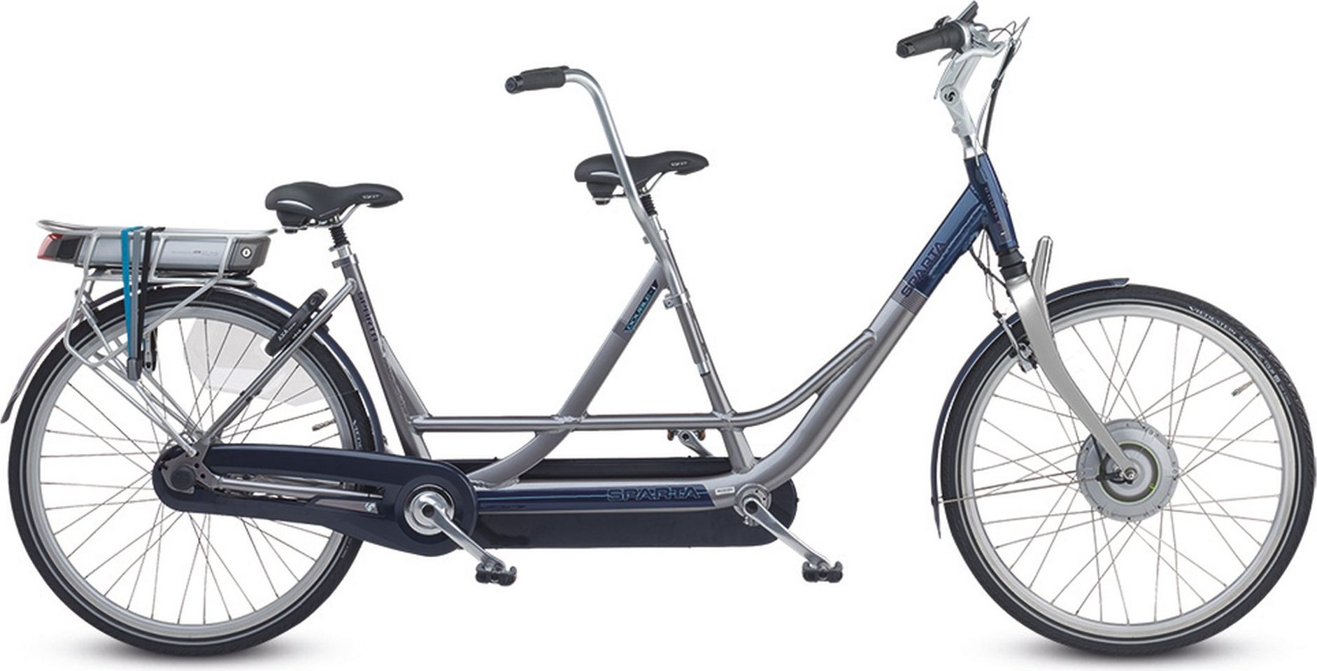 Samen een rondje fietsen is natuurlijk erg leuk om te doen, maar wat nog leuker is om echt met elkaar te fietsen op een tandem! Combineer je krachten op de Sparta en beleef nog meer plezier aan het samen fietsen. Om je te helpen bij een heuvel of tegenwind is de fiets uitgerust met de geruisloze ION voorwielmotor. Met de Sparta Double-X beschik je over 8 Shimano Nexus versnellingen, hiermee heb je voor alle omstandigheden de juiste versnelling. De combinatie van een verende zadelpen en voorvork zorgen voor meer dan voldoende comfort tijdens het fietsen.