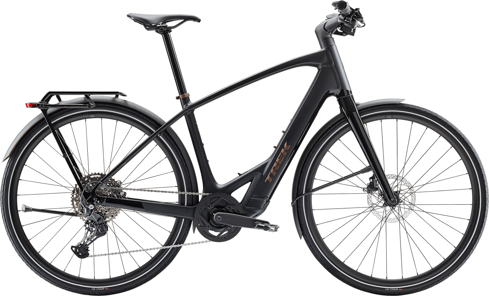 Tijdens je rit kun je gebruik maken van de 10 Shimano CUES versnellingen. Deze versnellingen bieden betrouwbare prestaties en de 10 versnellingen geven voldoende bereik in elke situatie. Ook het remmen gaat makkelijk met de hydraulische schijfremmen. Met deze remmen kun je vertrouwen op uitstekende remprestaties, zelfs wanneer het slecht weer is. De Trek FX+ 7 is uitgerust met spatborden, een bagagedrager, een standaard en geïntegreerde verlichting aan de voor- en achterkant. De FX+ 7 is een uitkomst voor sportieve fietsers die in beweging willen blijven en tegelijkertijd willen genieten van het comfort van elektrische ondersteuning op de fiets.