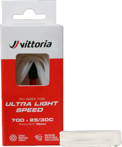 Ontworpen voor pure snelheid, zijn de Vittoria Ultra Light Speed binnenbanden de snelste en lichtste binnenbanden ooit ontwikkeld. Met een gewicht dat 70% lichter is dan standaard butyl binnenbanden en 14% sneller, bieden ze de laagst mogelijke rolweerstand. Gemaakt van thermoplastisch polyurethaan (TPU), zorgen ze voor een lagere rolweerstand en een aanzienlijke gewichtsbesparing. Ze zijn perfect voor wielrenners die maximale snelheid willen zonder in te leveren op gebruiksgemak. Let op: vanwege het materiaal zijn ze alleen compatibel met schijfremmen. Deze binnenbanden hebben een uitschuifbaar rood Vittoria-ventiel met verwijderbare kern. De Vittoria binnenband is 100% recyclebaar en weegt slechts 30,6 gram.